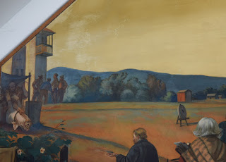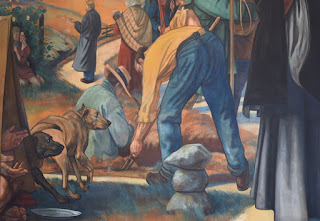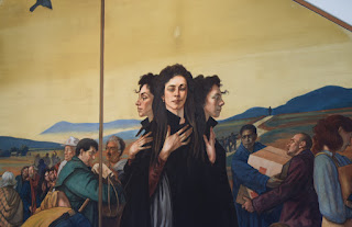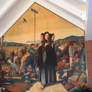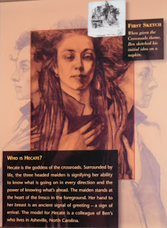 Recently I took a trip to Statesville, NC, to see the fresco called "Images at the Crossroads." Ben Long created it and depicts Hecate standing at the center of three roads with images of what was going on in history around the time it was created. She stands with her hands against her chest in a gesture of welcome to all to approach.